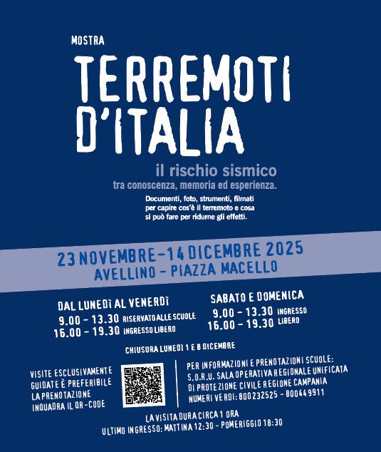 La mostra, realizzata dal Dipartimento della Protezione Civile con il contributo della Regione Campania e il patrocinio del Comune di Avellino, è un viaggio interattivo alla scoperta del rischio sismico: un percorso tra memoria, conoscenza e partecipazione per costruire insieme un futuro più sicuro.